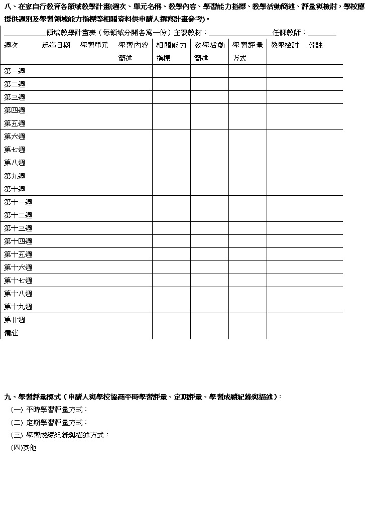 (十)由家長檢送申請資料(申請書及教學計畫書乙式五份)向學校提出申請,學校初審通過後備文函送本府教育處,由專家、學者進行複審。